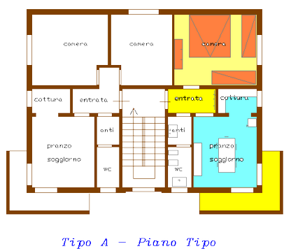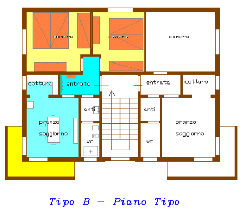 Con questa tipologia abbiamo disponibile 3 appartamenti ( il n. 2 piano rialzato, il n. 4 piano primo e il n. 6 piano secondo).